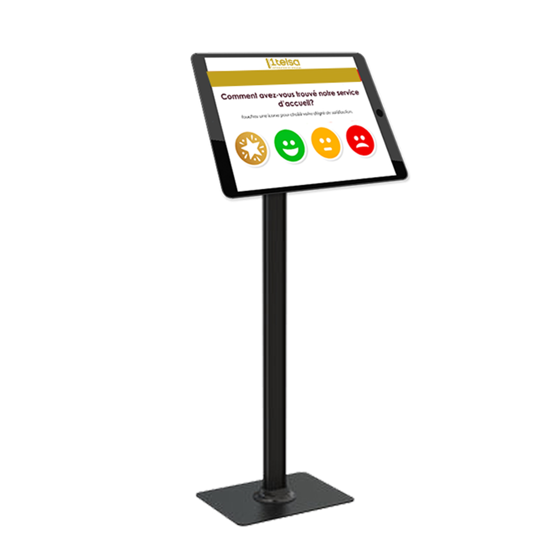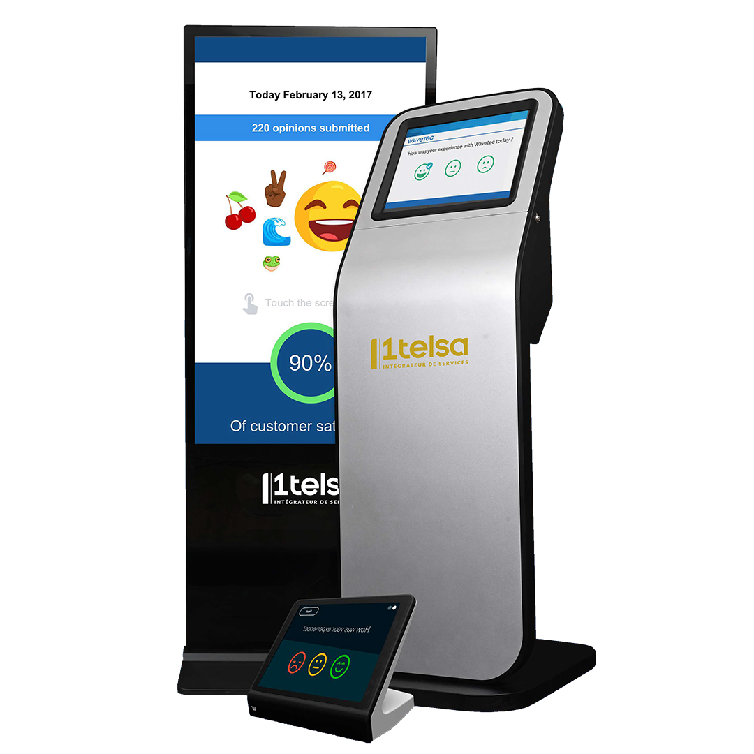 Les clients peuvent choisir de donner leur avis positif ou de soumettre une réclamation via un écran tactile.